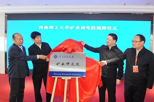 (郭金刚、刘银志、杜波、杨治国共同为河南理工大学矿业研究院揭牌)