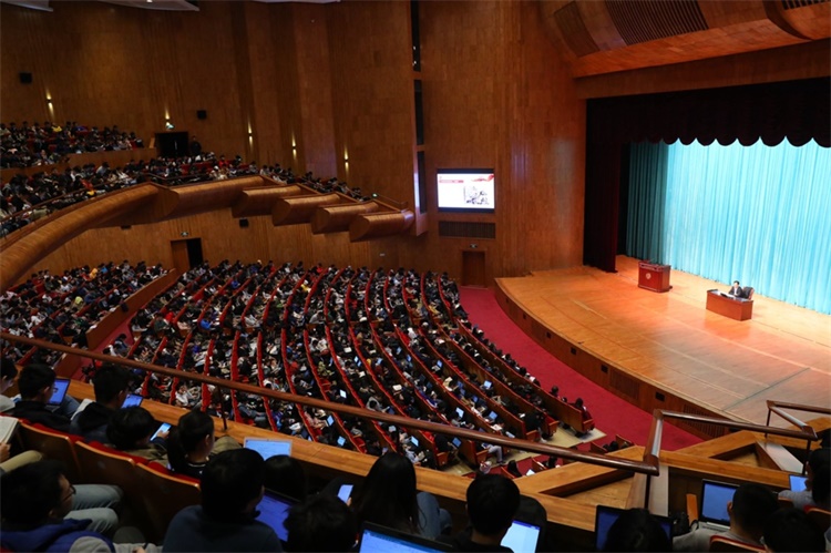 10月27日上午,北京大学百周年纪念讲堂座无虚席,北京大学党委常务副书记、马克思主义学院院长、习近平新时代中国特色社会主义思想研究院院长于鸿君教授为北大师生作了“北大人百年来的初心与使命”的主题报告。本场报告会是北京大学2019年秋季学期“形势与政策”课程的第二场报告。北京大学马克思主义学院江长仁教授、林娅教授,副院长王在全教授、刘军教授、王成英副教授等教师与1800余名本科生一起聆听报告。报告会由北京大学马克思主义学院程美东教授主持。