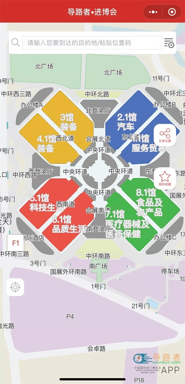 进博会嘉宾通过“导路者”系统的APP或者小程序,使用数字导览服务。一方面,充分利用小程序的便捷性,方便各方嘉宾在进口博览会期间在馆内进行定位导航;另一方面,通过国际领先的数字化导览技术,让嘉宾们获得全新的参展体验。通过“导路者”定位导航APP和小程序,可有效缓解现场服务人员应对大量外商问询服务的压力,将‘被动问询’服务转化为‘主动查询’,实现‘线上导引’+‘线下分流’的有机结合,将‘抽象指引’转化为‘形象展示’,体现进口博览会一流的软硬件服务水平。