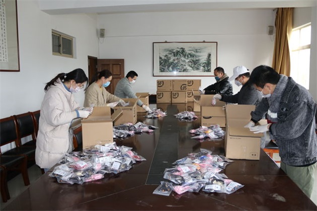 随后,12名留校大学生组建起一支“‘囊’中留’香’大学生志愿者服务团”。因疫情防控原因,药材、包装采购和运输都经历了不少困难,大家只能多方筹集,到一批材料就制作一批。