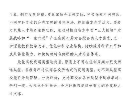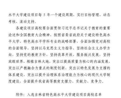 日前,吉林省教育厅等有关部门发布了《关于公布入选吉林省特色高水平大学建设项目高校名单的通知》和《关于公布全省普通本科高等学校发展类型选定结果的通知》。