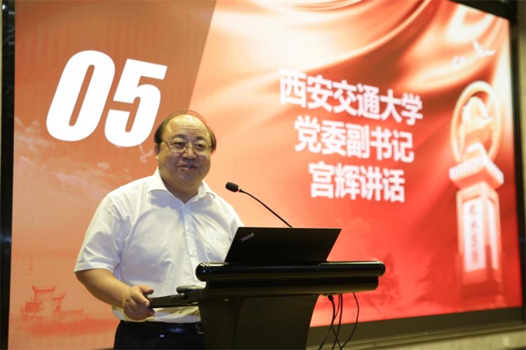 随后,宫辉讲话,他回顾了去年9月开班典礼上和同学们寄语的“大格局”“大胸怀”,并向同学们提出崭新、殷切的希望。他引用《后汉书》语“志不求易者成,事不避难者进”,勉励同学们克服艰难困苦,努力奋斗,告诫同学们只有做到“每临大事有静气”,方能处变不惊,有序有效地学习、工作,去提升自己,为我们国家实现中华民族伟大复兴的中国梦添砖加瓦。以孙中山语“革命尚未成功,同志仍需努力”为盼,告诫同学们预科结业其实是大学的开始,希望同学们传承并发扬好西迁精神,争做西迁新传人。