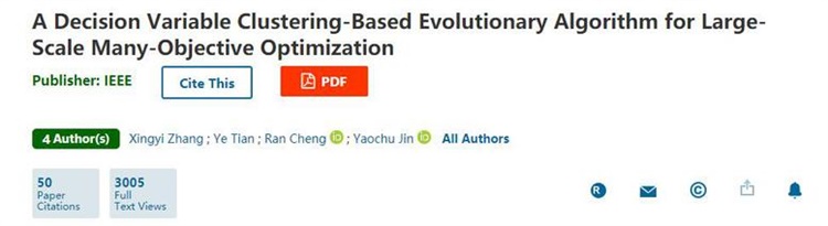 IEEE Transactions on Evolutionary Computation (IEEE TEVC) 是人工智能领域的国际顶级期刊,2020年的影响因子达到11.169,每年IEEE计算智能学会从该期刊前年发表的所有论文中遴选出一篇最具有创新性和影响力的高水平论文,并授予“IEEE Transactions on Evolutionary Computation Outstanding Paper Award”奖项。