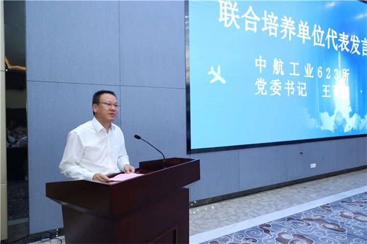 中航工业623所党委书记王育鹏代表联合培养单位讲话,他表示工程博士的培养切实响应了国家对高端应用型专门人才的需求,联合培养单位将积极配合学校工作,充分发挥校企协同育人优势,为工程博士研究生的培养工作创造条件,共同指导工程博士完成学业。同时,他希望同学们早日学业有成,更好地在单位重要岗位上发挥行业领军作用。
