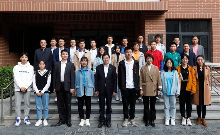 最后,李家俊祝福同学们学业有成,健康成长。会后,李家俊、雷鸣、巩金龙与各部门负责人同新生代表合影留念。