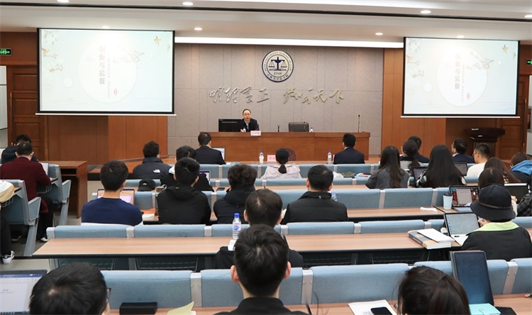 会见结束后,尹伊君以“制衡与监督”为题,结合真实案例和法治故事,与法学院师生一起,围绕现代检察制度的起源与演变、中国检察制度的形成与演变、中国检察制度的特色以及中国检察制度的启示等四方面内容展开深入研讨,为在场师生带来一场高水平的学术报告。尹伊君寄语青年学子,自觉做社会主义法治的崇尚者、遵守者和捍卫者,早日成为能够担当实现伟大复兴中国梦大任的时代新人。