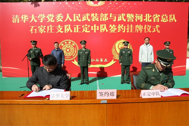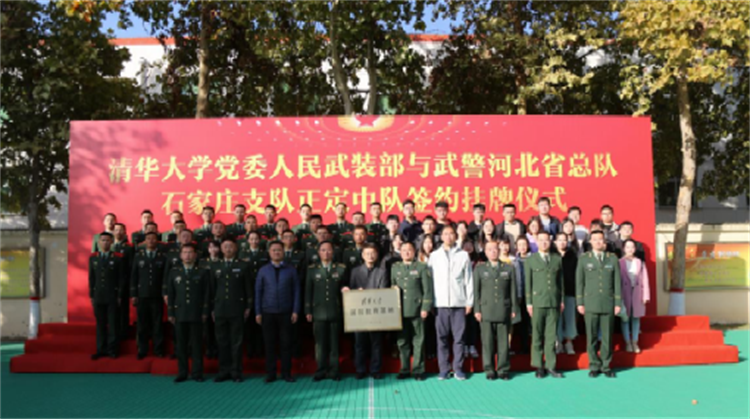 10月22日,清华大学党委武装部及部分师生代表赴河北省石家庄市正定县,与武警石家庄支队正定中队签署共建协议,并在正定中队挂牌“清华大学国防教育基地”,这是清华大学与武警部队合作设立的首个国防教育基地。