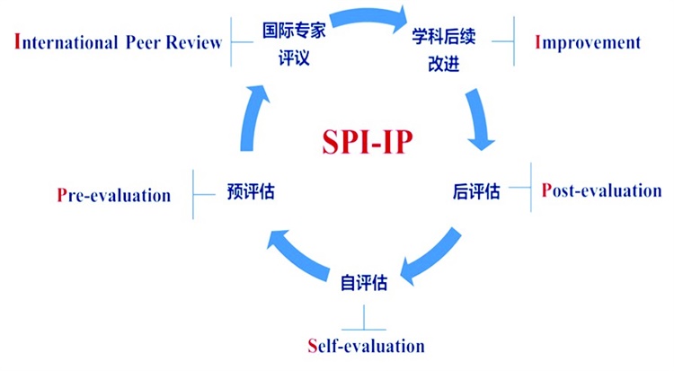 基于此,天津大学自2016年启动了学科国际同行评议工作,始终坚持“以评促建、以评促宣,推动学科内涵建设和一流水准”的方针和“高标准、科学性、高质量”的原则。在国际评议工作中,研究生院学科办在广泛调研的基础上,科学设计了包括前期筹备、材料准备、专家遴选、现场评议和意见反馈在内的工作流程和注意环节,形成了具有“天大特色”的学科国际同行评议模式——“SPI-IP”,即包括自评估(Self-evaluation)、预评估(Pre-evaluation)、国际专家评议(International Peer Review)、学科后续改进(Improvement)和学科建设“后评估”(Post-evaluation)环节,为学科国际同行评议工作的高质量开展提供了制度保障。天津大学“SPI-IP”模式主要包含以下环节: