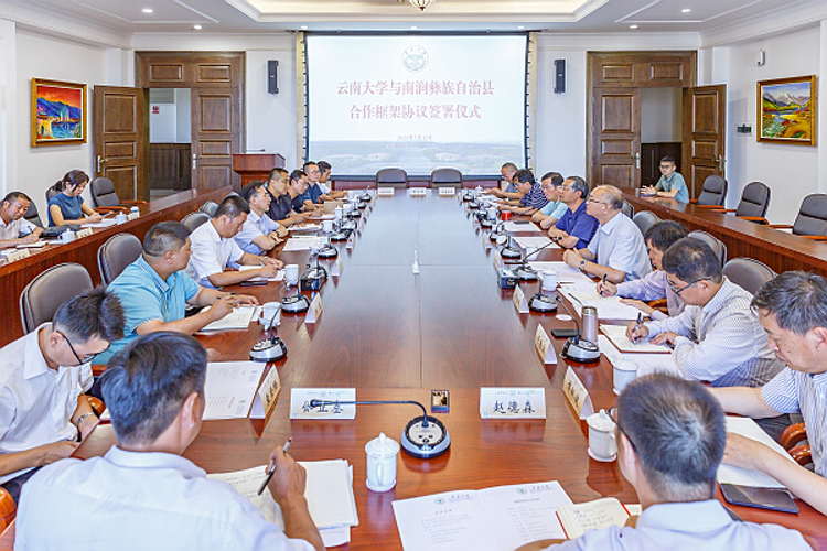 王绍基对云南大学长期以来给予南涧县建设发展的大力关心、支持和帮助表示感谢,并介绍了南涧县近年来在脱贫攻坚、乡村振兴方面所取得的成绩。王绍基表示,通过乡村振兴专家工作站等形式,云南大学为南涧输送了人才和智力支持,希望通过此次合作框架协议的签署,落实好乡村振兴大调研等系列工作,助力南涧美丽县城建设规划、文旅融合发展、教育教学、产业投资等方面工作。