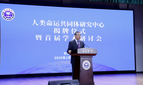2025年1月2日,人类命运共同体研究中心揭牌仪式在北京举行。中共中央政治局委员、外交部长王毅为研究中心揭牌并致辞。