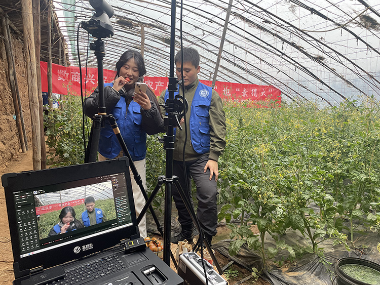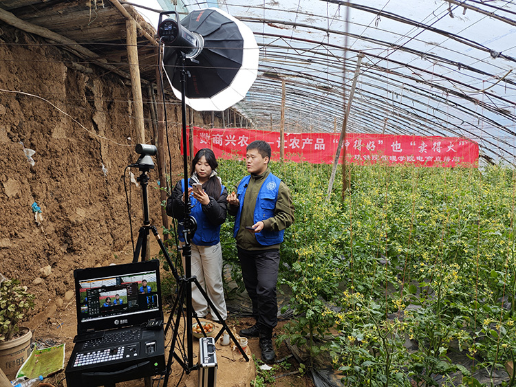 近日,陕西铁路工程职业技术学院工程管理与物流学院大学生电商直播团队,来到蓝田县普化镇楸树庙村,开展"数商兴农--让农产品种得好也卖的火"直播助农实践活动。学生们将直播间搬进圣女果种植基地,通过特写镜头展示果品、实时采摘体验、农户创业访谈等环节,吸引超1600余人次观看,直播间互动评论刷屏不断。