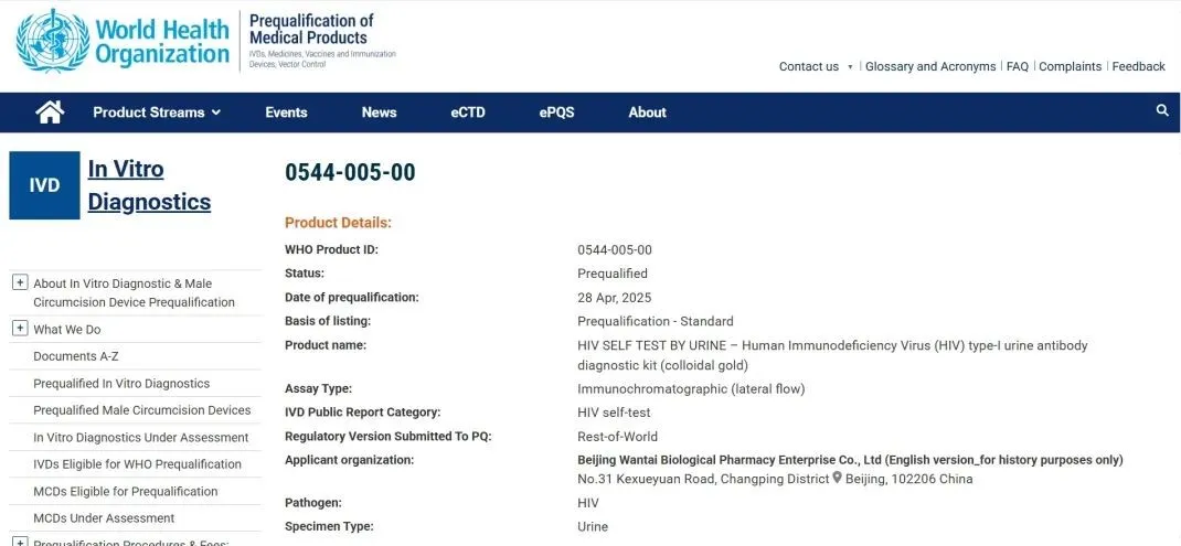 图1 HIV尿液自检试剂获得WHO PQ认证