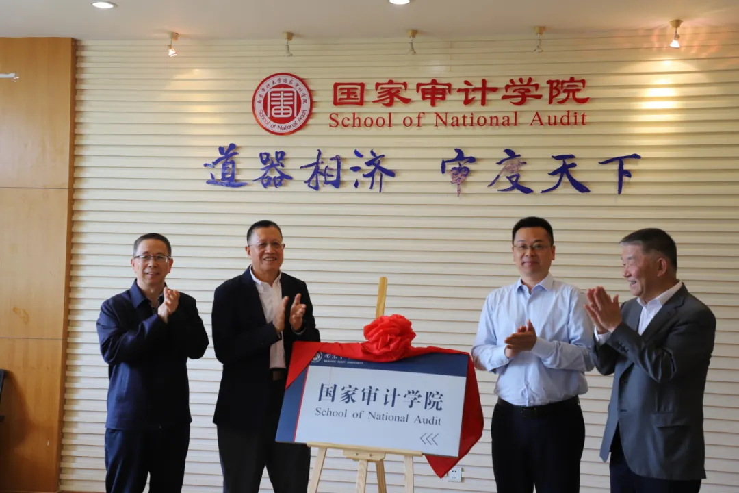会上,李卫红宣读了学校《关于调整内设机构的通知》文件。孙宝厚、陆华良、周维培、王会金共同为国家审计学院揭牌。