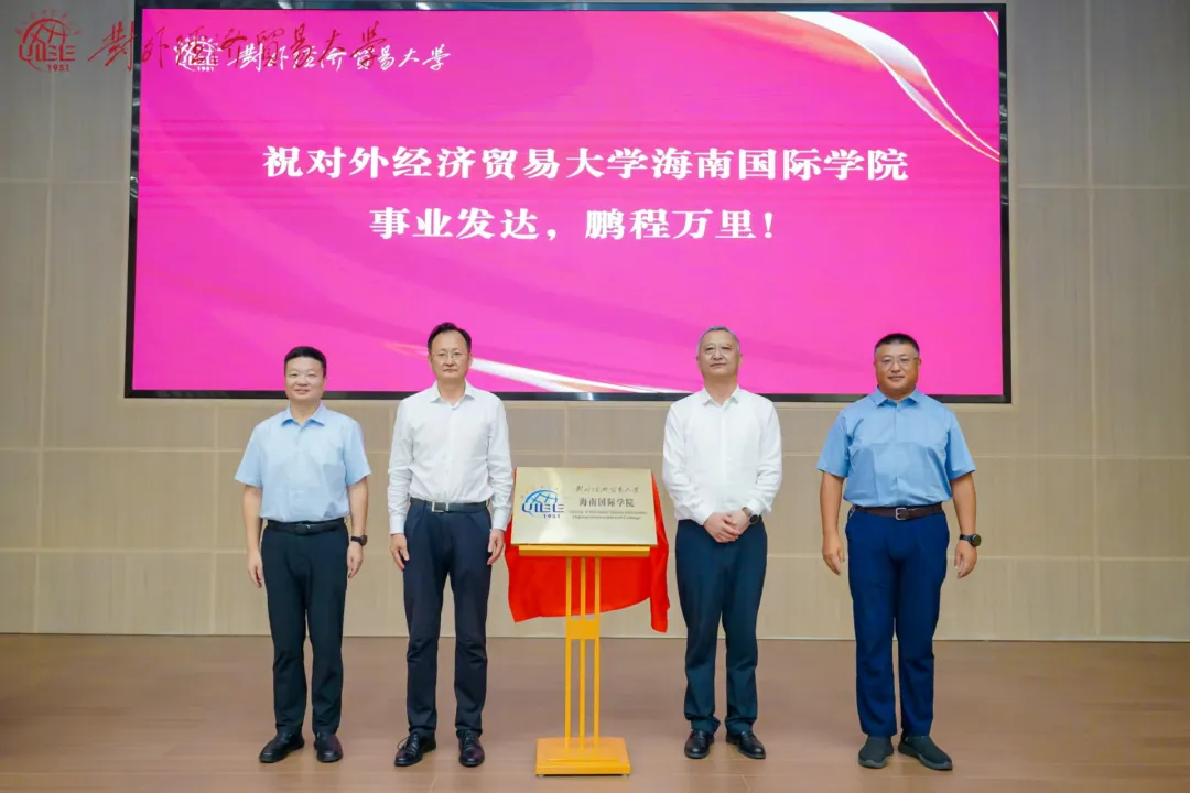 在揭牌仪式上,对外经济贸易大学与海南陵水黎安国际教育创新试验区管理局签署了合作备忘录和国际学生合作培养协议,明确双方将在教育、科研等领域开展全方位、深层次的合作。与会嘉宾共同为海南国际学院揭牌。