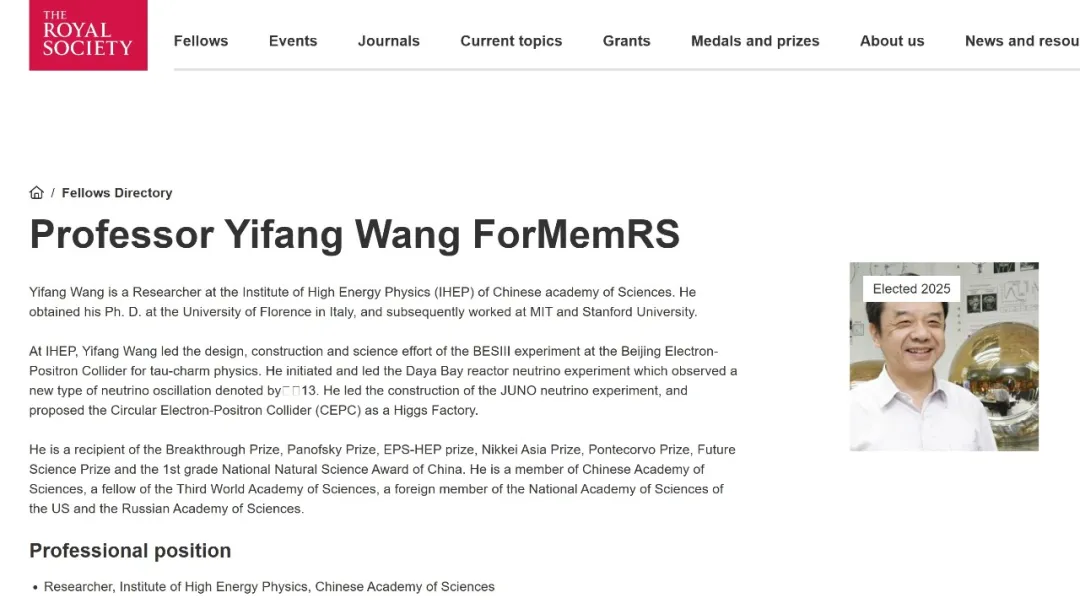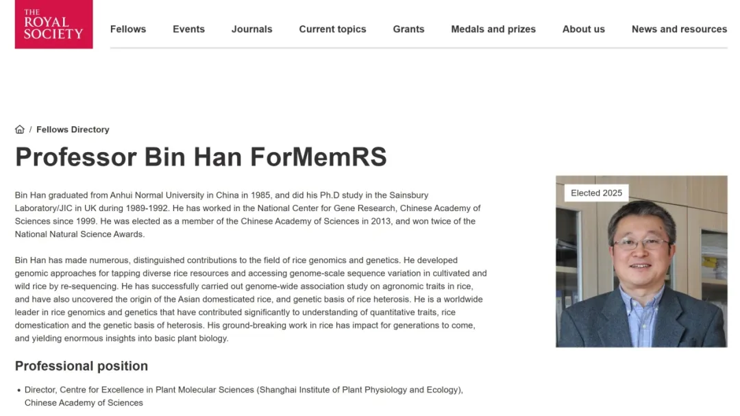 其中,中国科学院院士、国科大生命科学学院院长、中国科学院分子植物科学卓越创新中心主任韩斌;中国科学院院士、国科大核科学与技术学院院长、中国科学院高能物理研究所研究员王贻芳;中国科学院院士、国科大博士生导师、中国科学院大连化学物理研究所研究员杨学明当选英国皇家学会外籍院士。