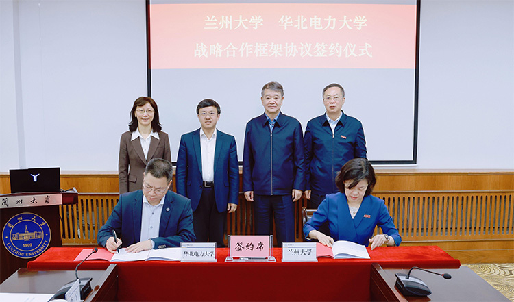 5月23日,华北电力大学与兰州大学举行战略合作框架协议签约仪式。华北电力大学党委书记汪庆华,校长、党委副书记毕天姝与兰州大学党委书记马小洁、校长杨勇平出席签约仪式。党委常委、副校长檀勤良,兰州大学常务副校长曹红和副校长王为参加座谈交流。