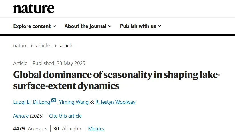 近日,清华大学水利水电工程系龙笛教授团队在全球地表水体遥感监测研究中取得重要进展,揭示全球百万湖泊水域面积的多尺度动态与季节性主导机制,在世界范围内打破了长期困扰遥感水文界的“时间‒空间”权衡瓶颈,推动全球湖泊遥感监测从“静态观测”迈入“高精度动态解析”。相关研究成果以《季节性主导全球湖泊水域面积动态》(Global dominance of seasonality in shaping lake-surface-extent dynamics)为题在线发表于《自然》(Nature)。