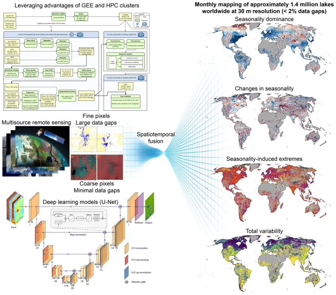 基于深度学习的遥感大数据时空融合实现全球百万湖泊的高分辨率水域面积连续监测