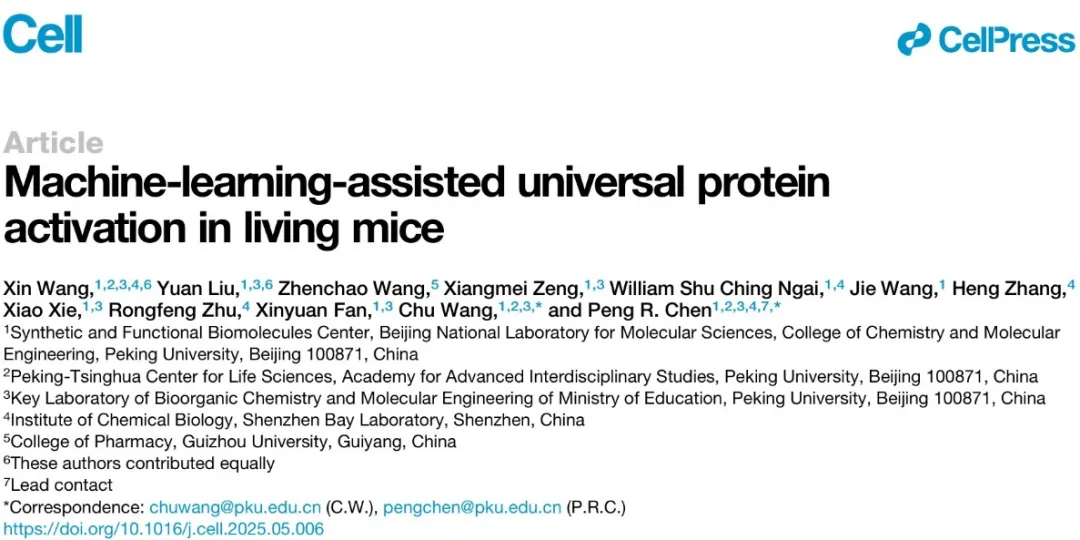 5月27日,北京大学化学与分子工程学院、前沿交叉学科研究院生命科学联合中心陈鹏教授课题组和王初教授课题组的合作成果以“Machine-learning-assisted universal protein activation in living mice”为题在《细胞》(Cell)杂志在线发表。