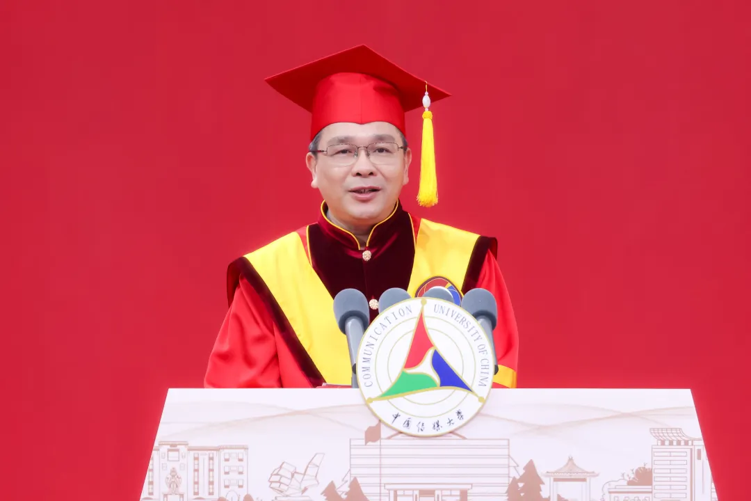 同学们在校的这段时光,恰逢学校迈入高质量发展的新阶段,你们的青春拼搏成为校园独一无二的亮丽风景,你们的努力与收获深深地融入学校事业的发展进程。难忘去年9月,在我们共同庆祝中国传媒大学70周岁生日的欢庆时刻,收到了习近平总书记给学校全体师生的重要回信。总书记的殷殷嘱托,既是勉励与期许,更是信任和重托,是我们每一位中传人的荣光与自豪,也是同学们奔赴人生新征程的强大精神力量。