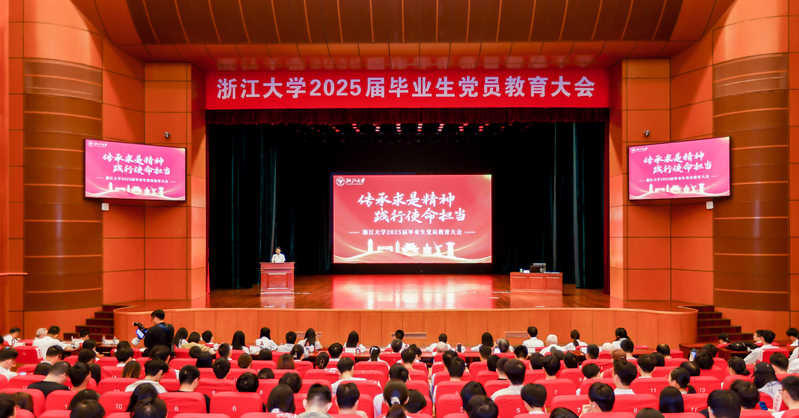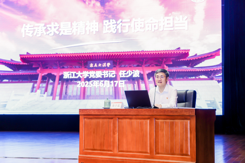 6月17日上午,浙江大学2025届毕业生党员教育大会在紫金港校区剧场举行,任少波为赴重点单位就业毕业生代表授牌、为选调生代表出征授旗,并讲授以“传承求是精神 践行使命担当”为题的专题党课,引导毕业生追逐远大梦想,在新征程上行稳致远,拥抱幸福人生。