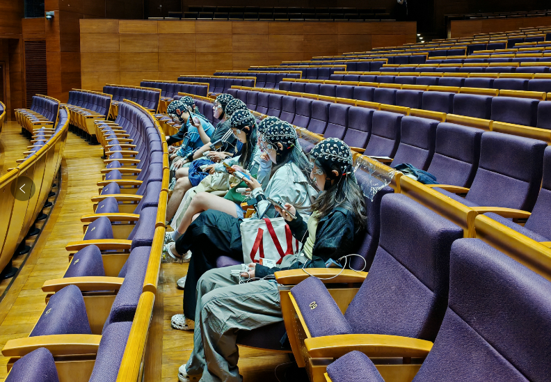 图上,8位头戴“神奇发帽”的人坐在新清华学堂舞剧演出《咏春》的观众席上,网友纷纷留言,有人以为是集体染发看演出的行为艺术,有人说这像是被蕨类植物寄生,还有人担心会不会对身体有影响……