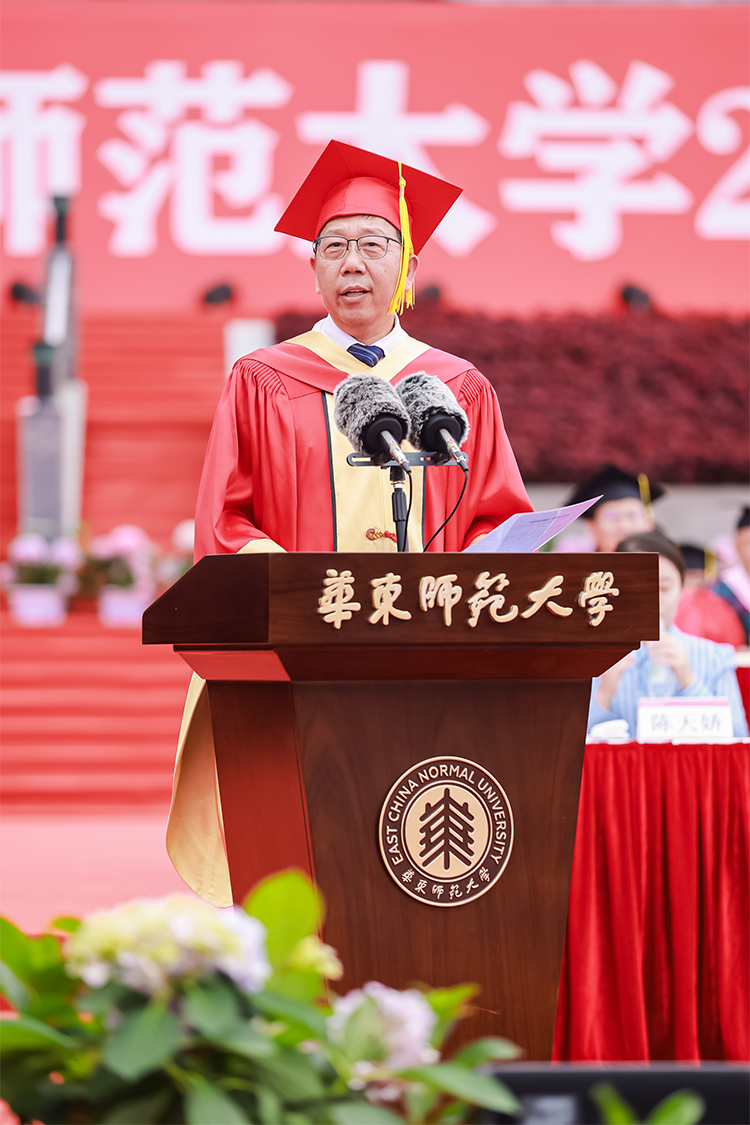 6月19日上午,华东师范大学2025届毕业典礼在闵行校区举行。毕业典礼上,校长钱旭红院士围绕如何于变局中开新局,危机中育先机,在不确定中创建自己的确定性,以“巨变孕育希望,艰难托举吉祥”为题,为毕业生们讲述最后一课,并满怀深情地寄语2025届毕业学子。钱校长道出了什么殷切期望?一起来看讲话全文!