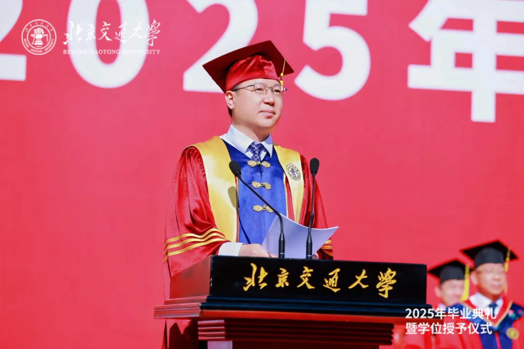 6月20日,北京交通大学校长余祖俊在北京交通大学2025年毕业典礼暨学位授予仪式上发表了题为《智能时代的知与行》的讲话,深情寄语2025届毕业生:“学会选择、学会放弃、耐得住寂寞、经得住诱惑”。