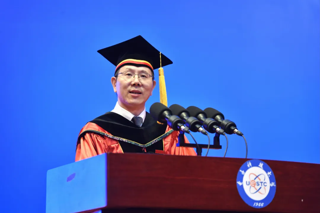 6月24日,电子科技大学2025年学生毕业典礼暨学位授予仪式在清水河校区体育馆隆重举行,4294位本科生、6004位研究生迎来大学“最后一课”。胡俊校长以《奋进强国路 未来诚可期》为题,寄语全体毕业生。新华网等在线平台同步直播了典礼盛况。下面,和小电一起看看致辞全文吧: