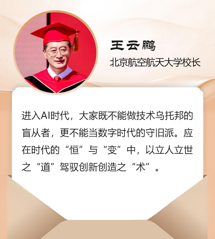 毕业寄语全文→【北京航空航天大学校长王云鹏:守常达变,明道精术】