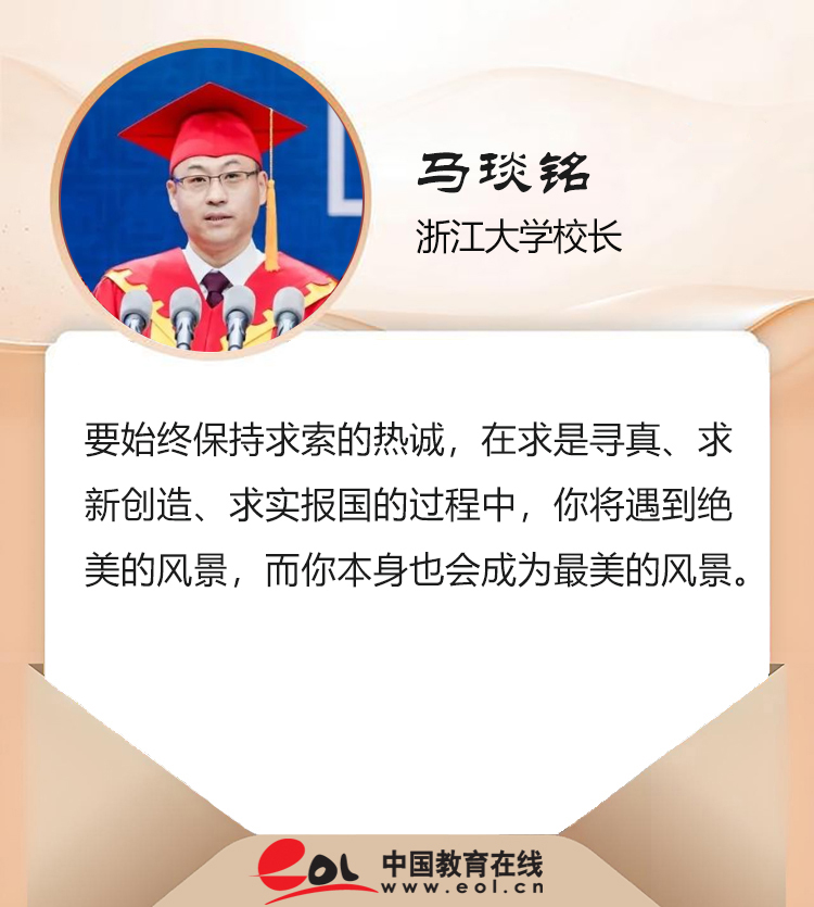 毕业寄语全文→【浙江大学校长马琰铭:保持求索的热诚 成就最美的风景】