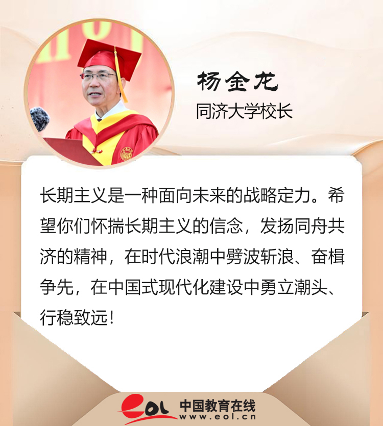 毕业寄语全文→【同济大学校长杨金龙:坚持长期主义,做一个与祖国同行的奋斗者】