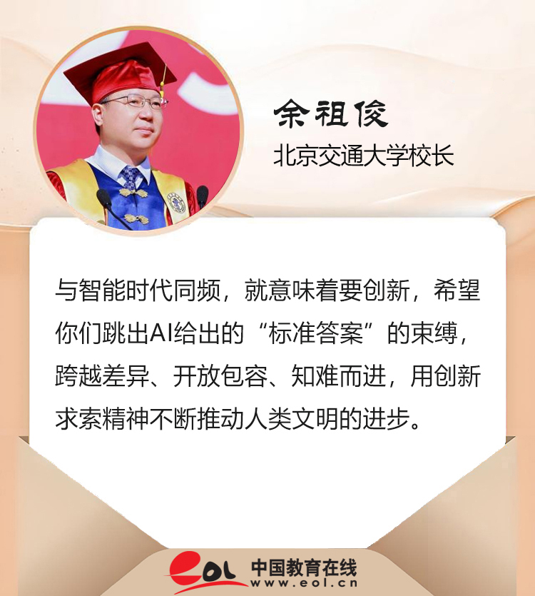 毕业寄语全文→【北京交通大学校长余祖俊:智能时代的知与行】