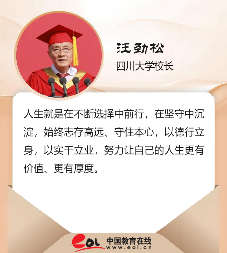 毕业寄语全文→【四川大学校长汪劲松:坚定前行步履 铸就人生厚度】