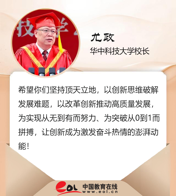 毕业寄语全文→【华中科技大学校长尤政:做新时代挺膺担当的奋斗者】