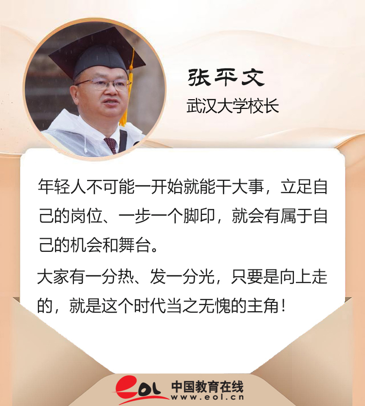 毕业寄语全文→【武汉大学校长张平文:传承珞珈薪火 勇当时代主角】