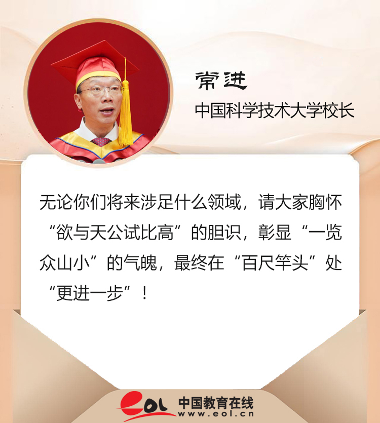 毕业寄语全文→【中国科学技术大学校长常进:襟佩校徽传薪火 肩担使命赴星辰】