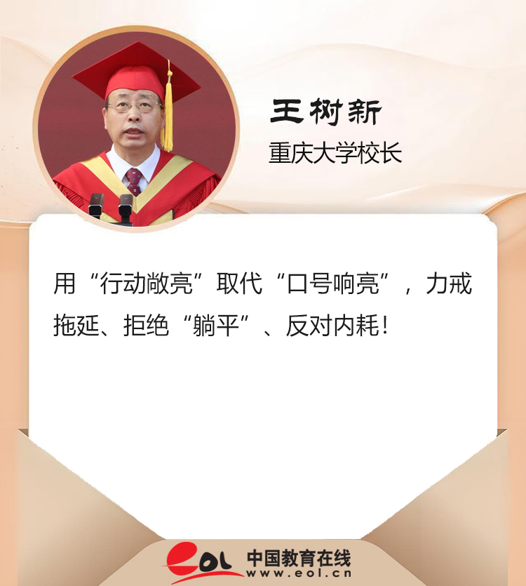 毕业寄语全文→【重庆大学校长王树新:力戒拖延、拒绝“躺平”、反对内耗】