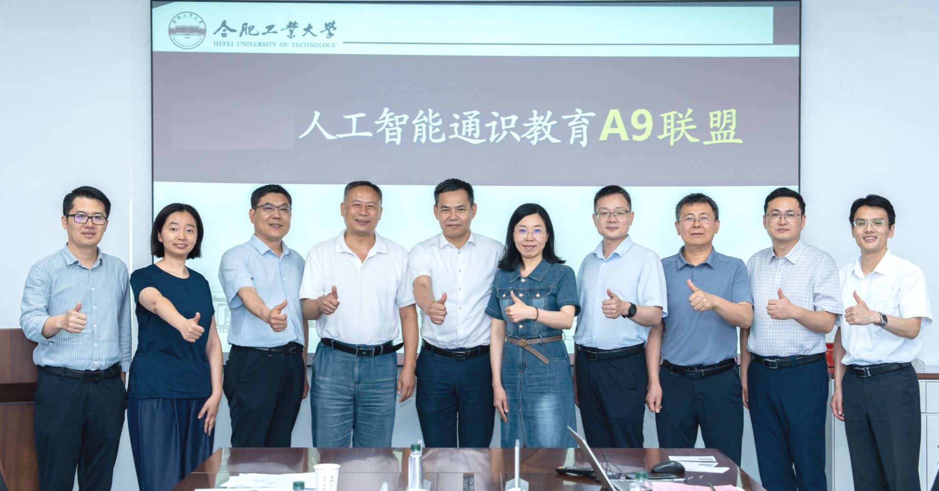 6月24日,合肥工业大学举办人工智能通识教育研讨会,与会单位经过商议,共同发起并成立了“人工智能通识教育A9联盟”,旨在联合开展课程建设、资源共享和应用推广。包括合肥工业大学、安徽农业大学、安徽医科大学、安徽中医药大学、安徽工业大学、淮北师范大学、安徽财经大学、合肥师范学院、安庆师范大学。