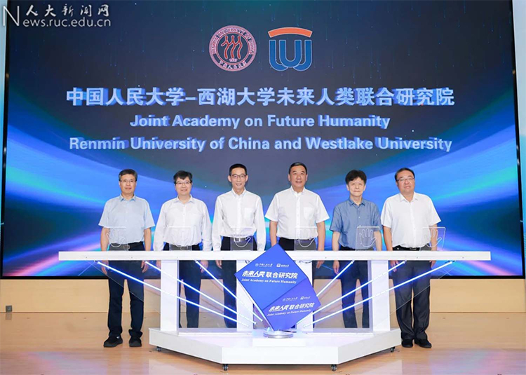 6月28日,中国人民大学与西湖大学携手成立“中国人民大学-西湖大学未来人类联合研究院”,并面向全球发布“未来人类十大议题”,聚焦人类文明演进的重大挑战与突破方向,以中国青年引领全球青年畅想未来、造福人类。