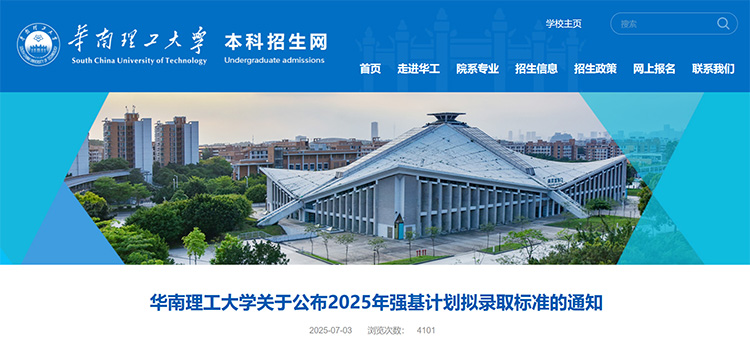 7月3日,华南理工大学公布2025年强基计划拟录取标准。