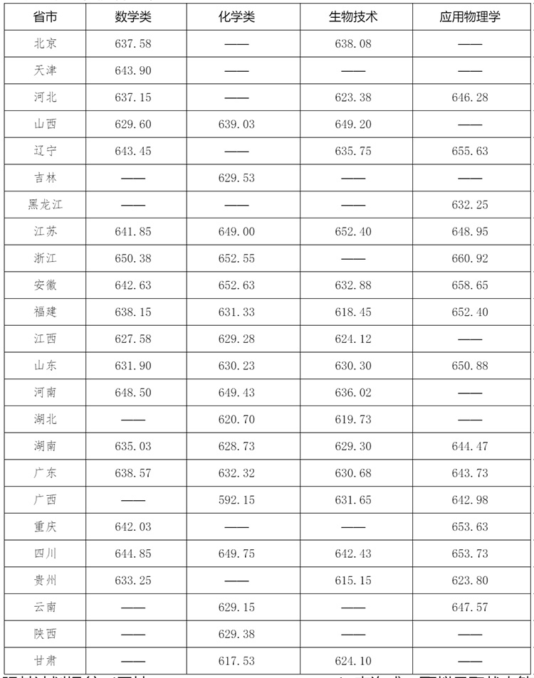 按照《华南理工大学2025年强基计划招生简章》,根据考生志愿、强基计划综合成绩及学校在生源省的强基计划招生专业和计划数,华南理工大学确定了各省各专业拟录取综合成绩分数线,公布如下。
