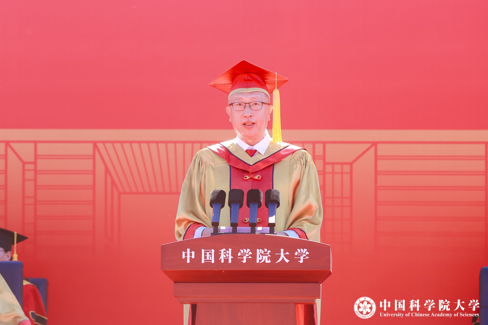 要做一个值得托付的人,要敢于挑战未知,保持自我学习能力,谋而后动,行且坚毅。毕业不是终点,而是起点。国科大的求学阶段只不过让大家选择了前进方向,建立了独立学习和工作的能力,大家要学会自我管理、自我约束,不断学习。生逢伟大时代,科技创新是你们肩头最重的责任。面对全球变局与科技竞争,未来充满挑战,而挑战正是淬炼成长的催化剂。希望同学们离开学校后仍不辍学习,不断进步,与时俱进,锻造解决真问题的真本领。希望同学们要敢于打破常规,不惧未知、不怕失败,勇做破壁者,不做内卷者。今后无论在哪里、做什么,都不要忘记早已融入你们基因和血脉中的“两弹一星”精神,不要忘记早已打在灵魂深处的许身报国的烙印,不仅要扛起“卡脖子”难题,更要承担起抢占科技制高点的时代重任。