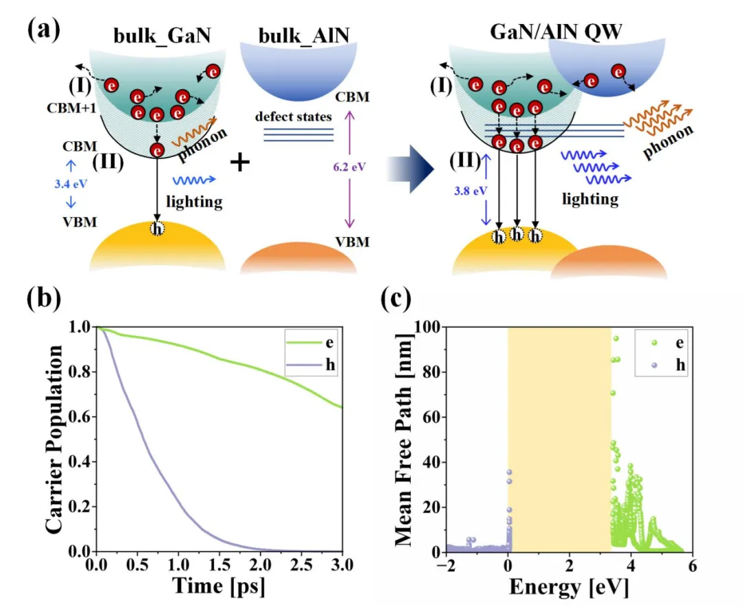 上述成果深化了对宽禁带氮化物中载流子动力学与缺陷相互作用机制的理解,对提升紫外LED内量子效率、实现高性能光电器件具有重要意义。
