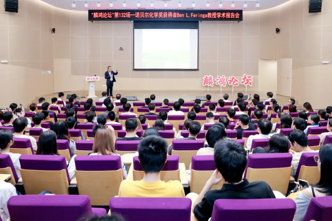 随后,Feringa教授以“构建微观世界的艺术”的主题为师生带来学术报告。分享他多年来在微观世界领域的科学探索与心得,特别是他多年来在分子马达领域的前沿探索与突破。