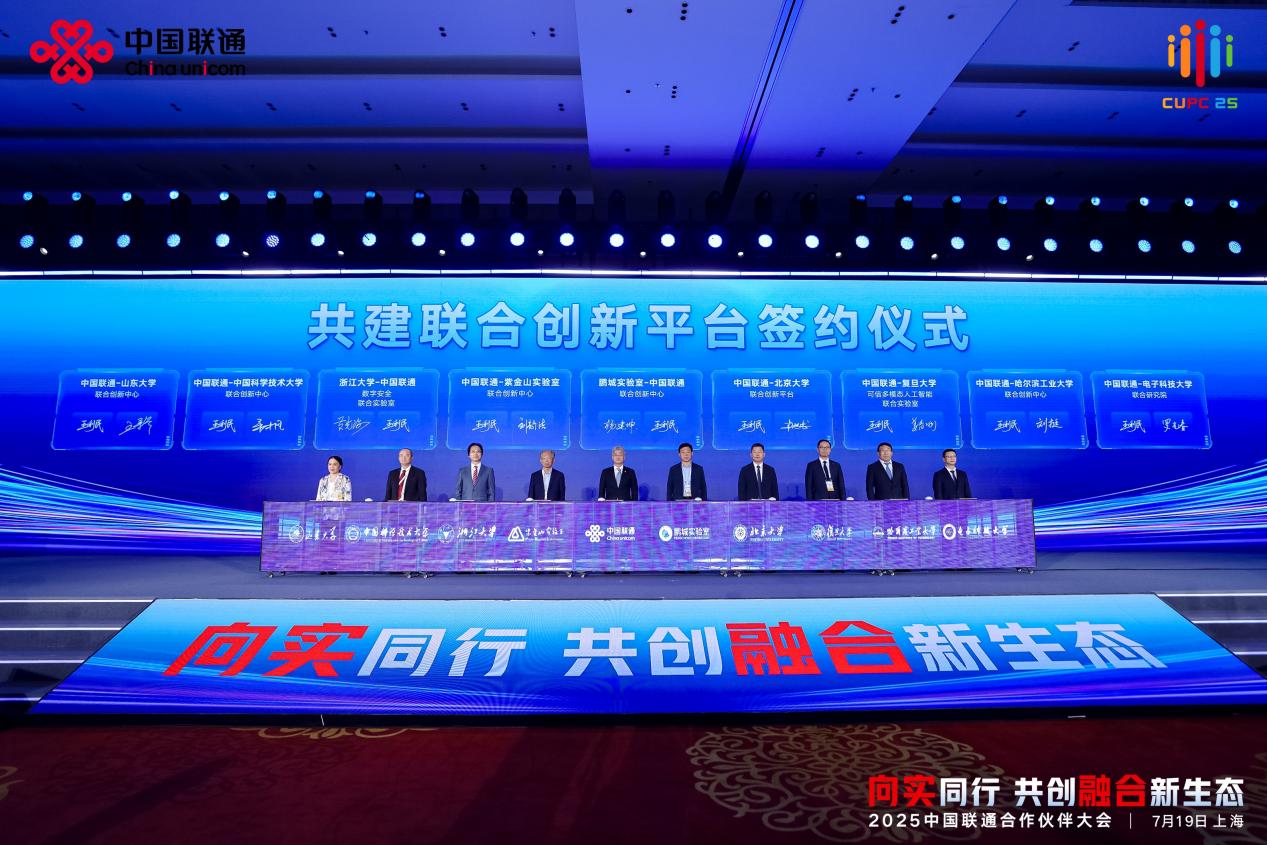 7月19日,2025年中国联通合作伙伴大会在上海召开。大会以“向实同行,共创融合新生态”为主题,聚焦网络筑基、科技赋能、产业革新、消费升级、安全护航五大领域,深化产学研用协同创新,共推数字技术融合突破,加速数实深度融合进程。政府相关部门负责人,中国科学院、中国工程院院士,全球顶尖高校、科研机构的专家学者,产业链合作伙伴、投资者,新闻媒体及中国联通方面的代表等出席大会主论坛。