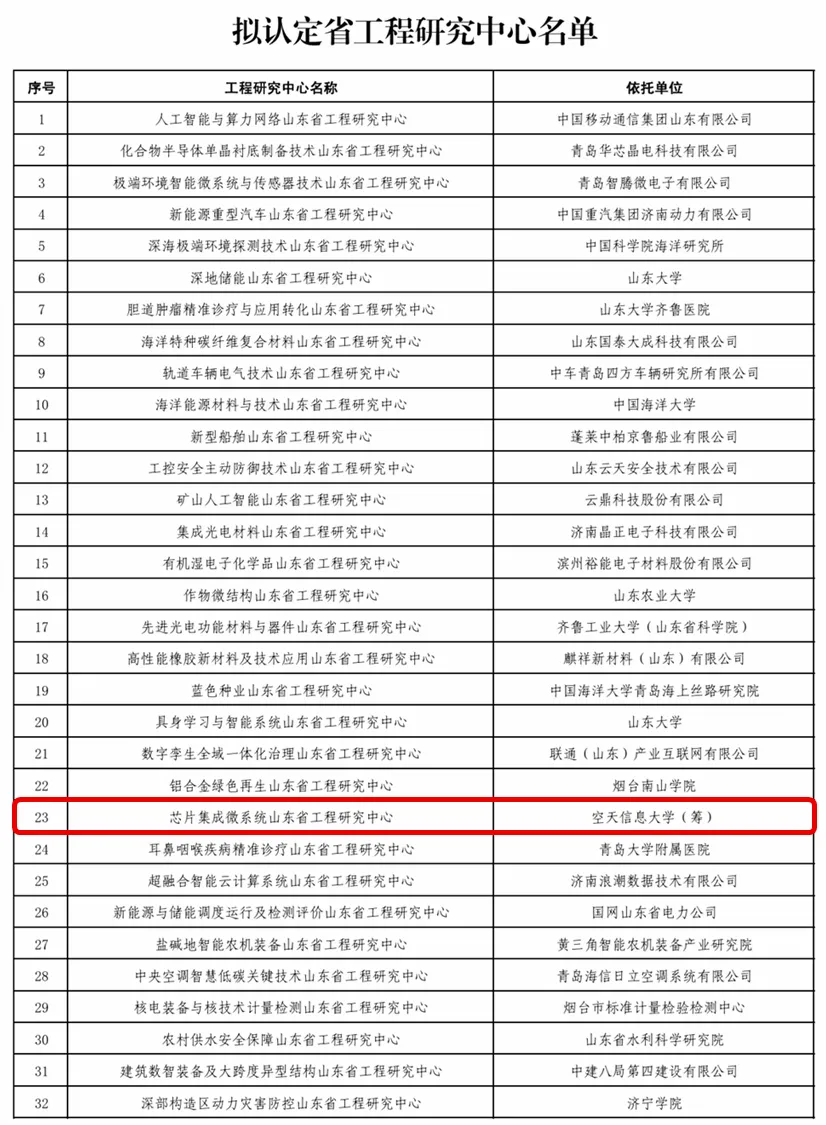 据空天信息大学(筹)官网消息,近日,山东省发展和改革委员会公布2025年山东省工程研究中心拟认定名单,空天信息大学(筹)牵头建设的“芯片集成微系统山东省工程研究中心”成功获批立项。这是学校筹建以来首个牵头获批的省级科研创新平台,标志着学校在科研平台建设上实现重大突破,为科研创新能力跃升注入强劲动能。