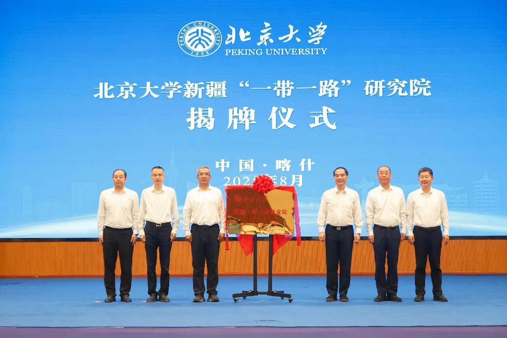 8月1日,北京大学新疆“一带一路”研究院在新疆喀什正式揭牌成立。新疆维吾尔自治区人民政府副主席凯赛尔·阿不都克热木,自治区副主席、喀什地委书记聂壮,北京大学校长、中国科学院院士龚旗煌,党委副书记、统战部部长姜国华等出席。北京大学副校长、中国科学院院士朴世龙与喀什地区行政公署副专员马继明共同为研究院揭牌。仪式由喀什地委副书记、教育工委书记李宏琪主持。北京大学院士、校友“新疆行”活动同步启动。