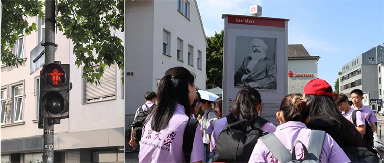漫步老城,从历史建筑到采用马克思形象的红绿灯小人,同学们既探寻着马克思的生活遗迹,也观察着当代德国社会对其形象的重新构建。在马克思雕像前,同学们围绕“中德马克思形象构建对比”展开热烈分享。