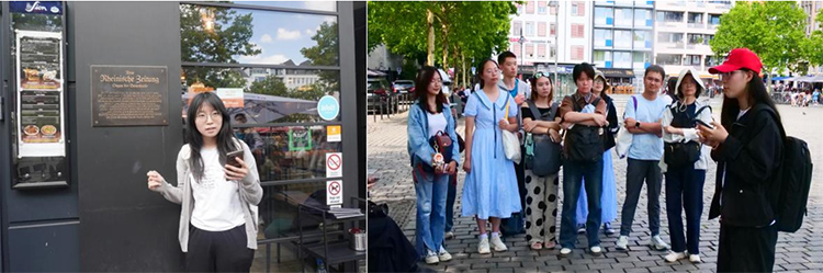 同时,团队五个学术小组围绕《共产党宣言》的形成与核心思想、马克思恩格斯思想及其当代形象重构、中国共产党与马克思主义中国传播史、社会革命与国家治理的实践路径、当代世界资本主义重要问题等核心议题,在各站积极开展了街头访谈。通过与德国民众的直接交流,同学们收集了关于马克思主义认知的第一手鲜活素材,为专题研究提供了宝贵的现实参照和跨文化视角。